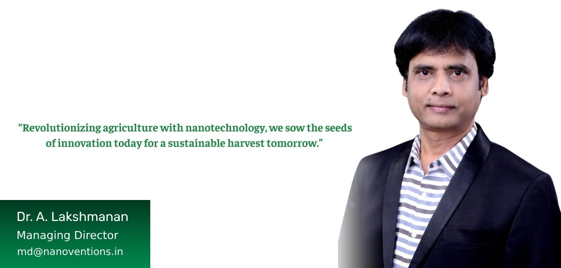 Dr. A. Lakshmanan is an accomplished academician and researcher in the field of Agricultural Nanotechnology and Climate Change Adaptation. With over two decades of experience, he has made significant contributions to the development of nanomaterials and nanosystems for crop care, nutrition, and environmental remediation. Dr. Lakshmanan is currently serving as the Managing Director of IFFCO Nanoventions Pvt Ltd, a company dedicated to developing commercial nano-fertilizer formulations.